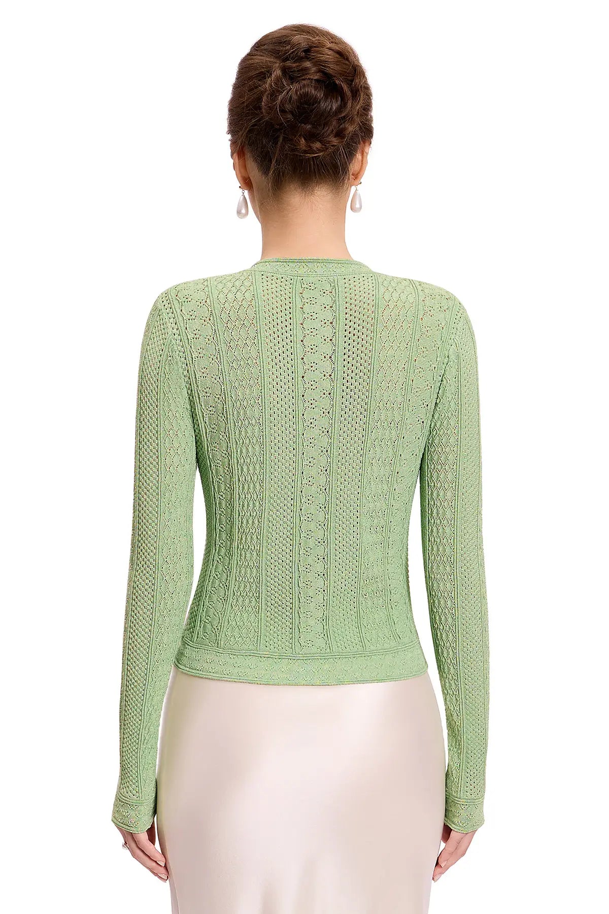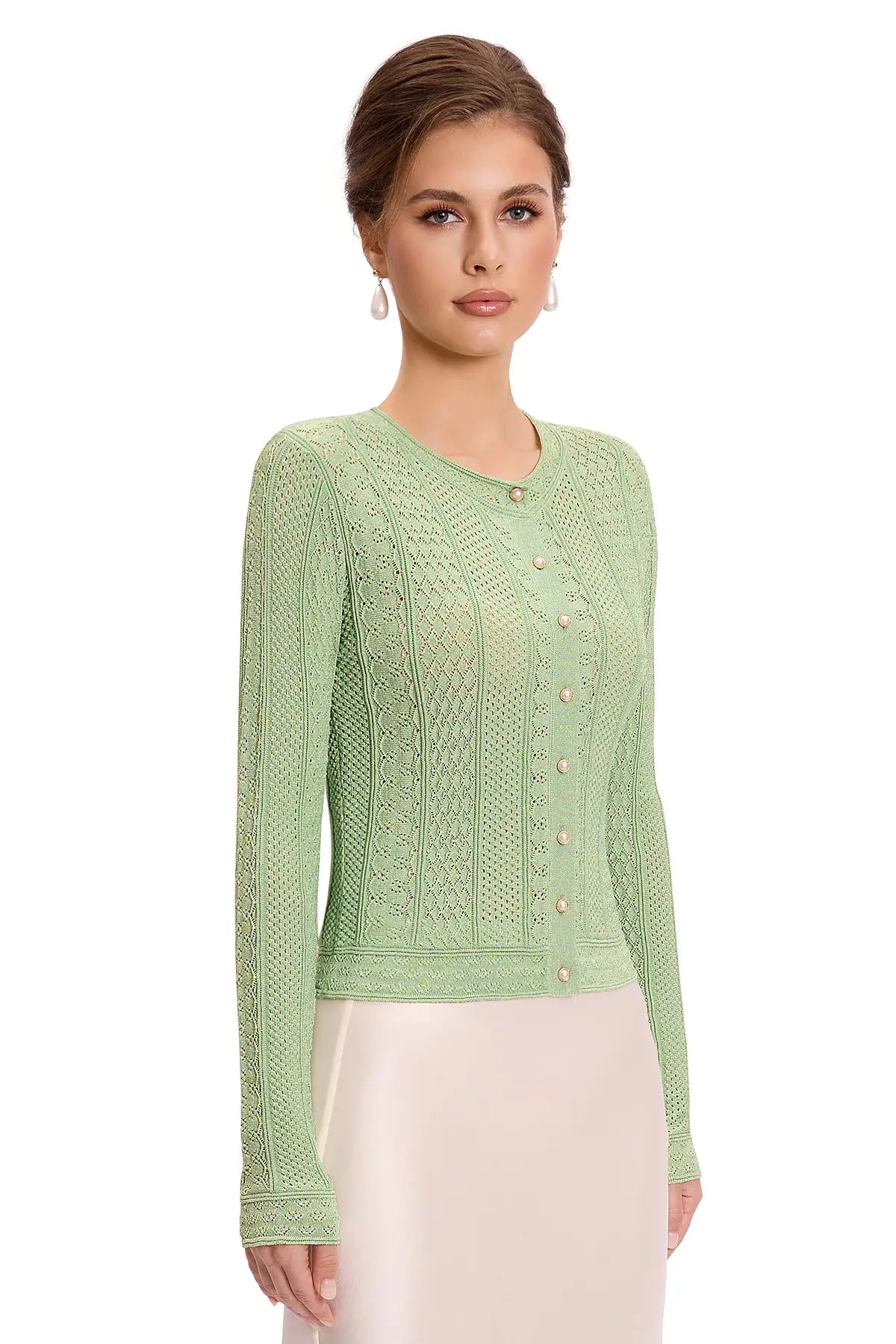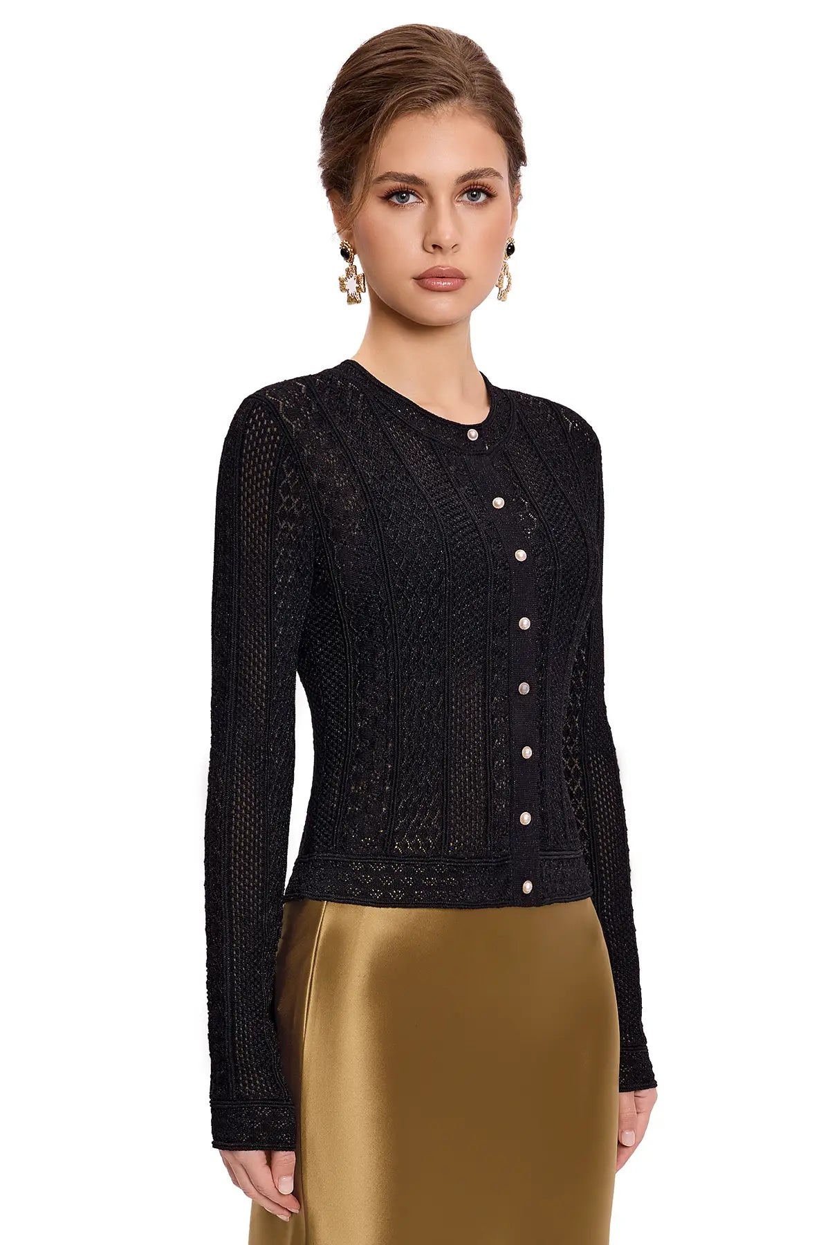 PACKAGING & PRESENTATIONThis comes packaged in an 11.75" x 14" bag made of velvet-like fabric (see photo). It's nice enough that I plan on keeping it to reuse for storing other things.MATERIAL & CONSTRUCTIONThe description says cotton with gold thread. Yes, there is gold thread that adds a subtle glimmer to the piece that you can't see very well in the product description photos. Hopefully you can see it a little better in the photos I've uploaded. The rest is cotton crochet. The item I have has no stitching or construction flaws, and is a well-made piece.COLOR ACCURACYI got the apricot color in size small. "Apricot" makes you think this is going to be a peachy color, but I'd say it's an off-white. The photo for apricot shows the item as it is - off-white. Trust the photo and not the color name for the apricot version.DESIGN DETAILSThe button closure is a round pearly button with metallic trim (see photo). It looks elegant and is a nice touch. The product description says that this piece has "Vintage Elegance with a Modern Fit," and I agree - it does feel vintage, but not necessarily with "old-lady" vibes.FIT & SIZINGAt 5'1" and 125 lbs, the fit of the small is a little snug around my upper arms, and the sleeve length extends almost to my knuckles. However, looking at the models in the product description photos, it seems the sleeves are meant to be that way. It otherwise looks nice on, and my husband actually said he likes it. He doesn't like anything.CARE INSTRUCTIONSThere are no care instructions on the label, but the product description does say to "hand wash in cold water and lay flat to dry." Given the delicate crochet construction, this seems necessary to maintain the shape.VALUE ANALYSISThis seems a fairly price to me at $80. I think it worth of what you're getting. Yes, the construction is nice and the details are elegant, but it's still a cotton machine-crocheted cardigan.STYLINGThe description suggests layering it "over a silk dress for evening parties" or "over a blouse for a professional office look." It does seem like it will work well as a layering piece for dressier occasions, but I plan on pairing it with jeans and wearing a camisole underneath for more casual occasions.FINAL VERDICTThis is a beautiful crochet cardigan with nice construction and elegant details. The gold thread adds a subtle glimmer, the button is a lovely touch, and the vintage pattern looks sophisticated. The fit is good (though snug in the upper arms for me). If you love the style and don't hesitate, it's a pretty piece that will dress up your wardrobe.