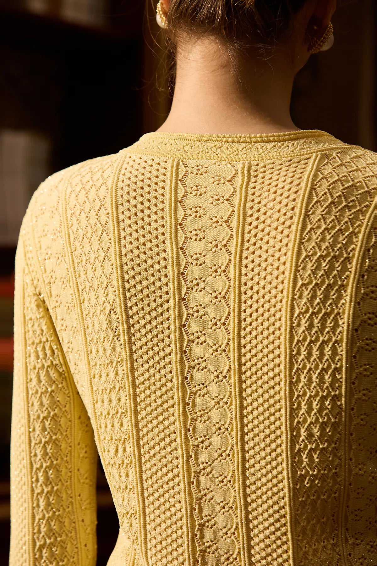 PACKAGING & PRESENTATIONThis comes packaged in an 11.75" x 14" bag made of velvet-like fabric (see photo). It's nice enough that I plan on keeping it to reuse for storing other things.MATERIAL & CONSTRUCTIONThe description says cotton with gold thread. Yes, there is gold thread that adds a subtle glimmer to the piece that you can't see very well in the product description photos. Hopefully you can see it a little better in the photos I've uploaded. The rest is cotton crochet. The item I have has no stitching or construction flaws, and is a well-made piece.COLOR ACCURACYI got the apricot color in size small. "Apricot" makes you think this is going to be a peachy color, but I'd say it's an off-white. The photo for apricot shows the item as it is - off-white. Trust the photo and not the color name for the apricot version.DESIGN DETAILSThe button closure is a round pearly button with metallic trim (see photo). It looks elegant and is a nice touch. The product description says that this piece has "Vintage Elegance with a Modern Fit," and I agree - it does feel vintage, but not necessarily with "old-lady" vibes.FIT & SIZINGAt 5'1" and 125 lbs, the fit of the small is a little snug around my upper arms, and the sleeve length extends almost to my knuckles. However, looking at the models in the product description photos, it seems the sleeves are meant to be that way. It otherwise looks nice on, and my husband actually said he likes it. He doesn't like anything.CARE INSTRUCTIONSThere are no care instructions on the label, but the product description does say to "hand wash in cold water and lay flat to dry." Given the delicate crochet construction, this seems necessary to maintain the shape.VALUE ANALYSISThis seems a fairly price to me at $80. I think it worth of what you're getting. Yes, the construction is nice and the details are elegant, but it's still a cotton machine-crocheted cardigan.STYLINGThe description suggests layering it "over a silk dress for evening parties" or "over a blouse for a professional office look." It does seem like it will work well as a layering piece for dressier occasions, but I plan on pairing it with jeans and wearing a camisole underneath for more casual occasions.FINAL VERDICTThis is a beautiful crochet cardigan with nice construction and elegant details. The gold thread adds a subtle glimmer, the button is a lovely touch, and the vintage pattern looks sophisticated. The fit is good (though snug in the upper arms for me). If you love the style and don't hesitate, it's a pretty piece that will dress up your wardrobe.
