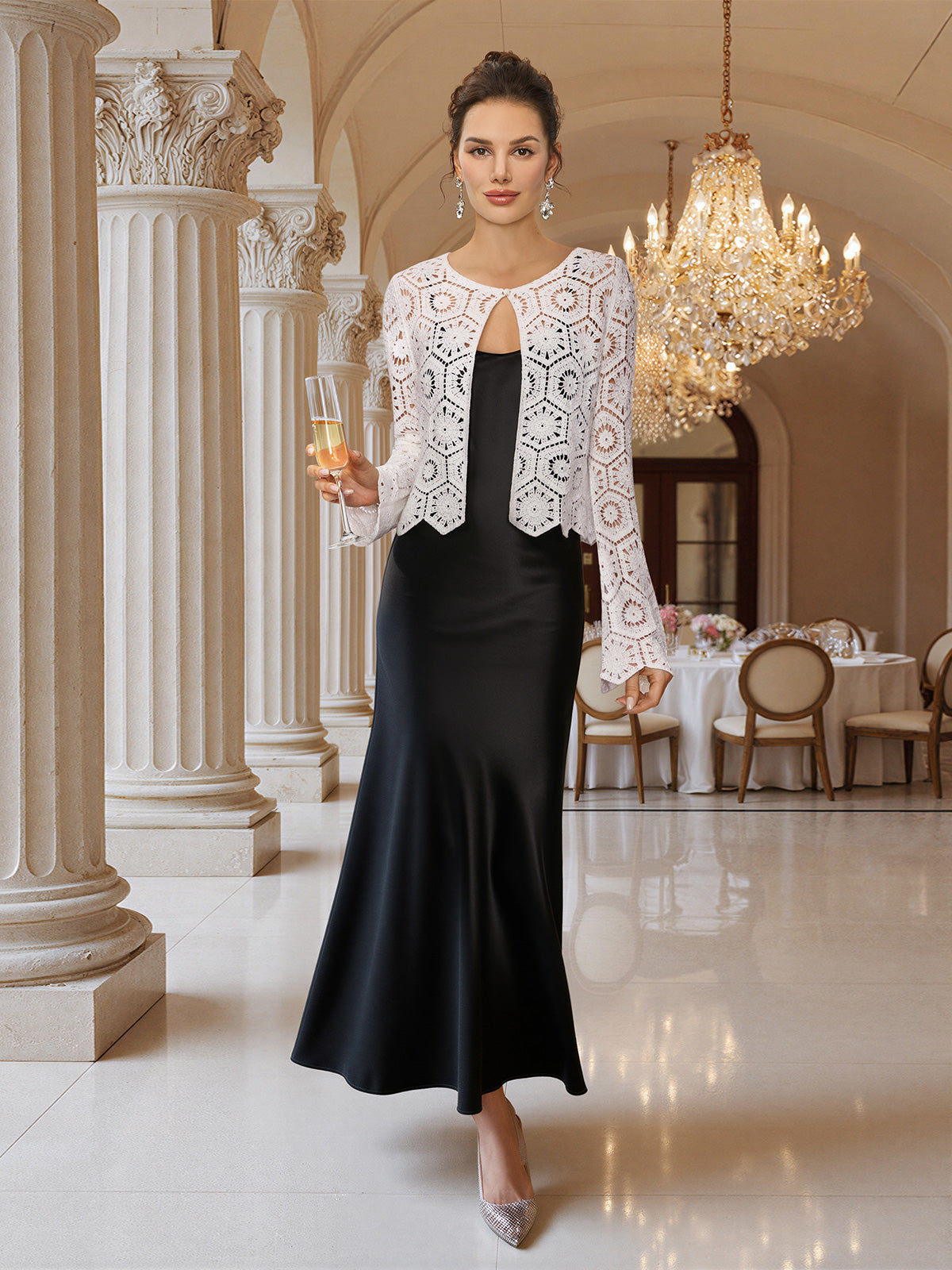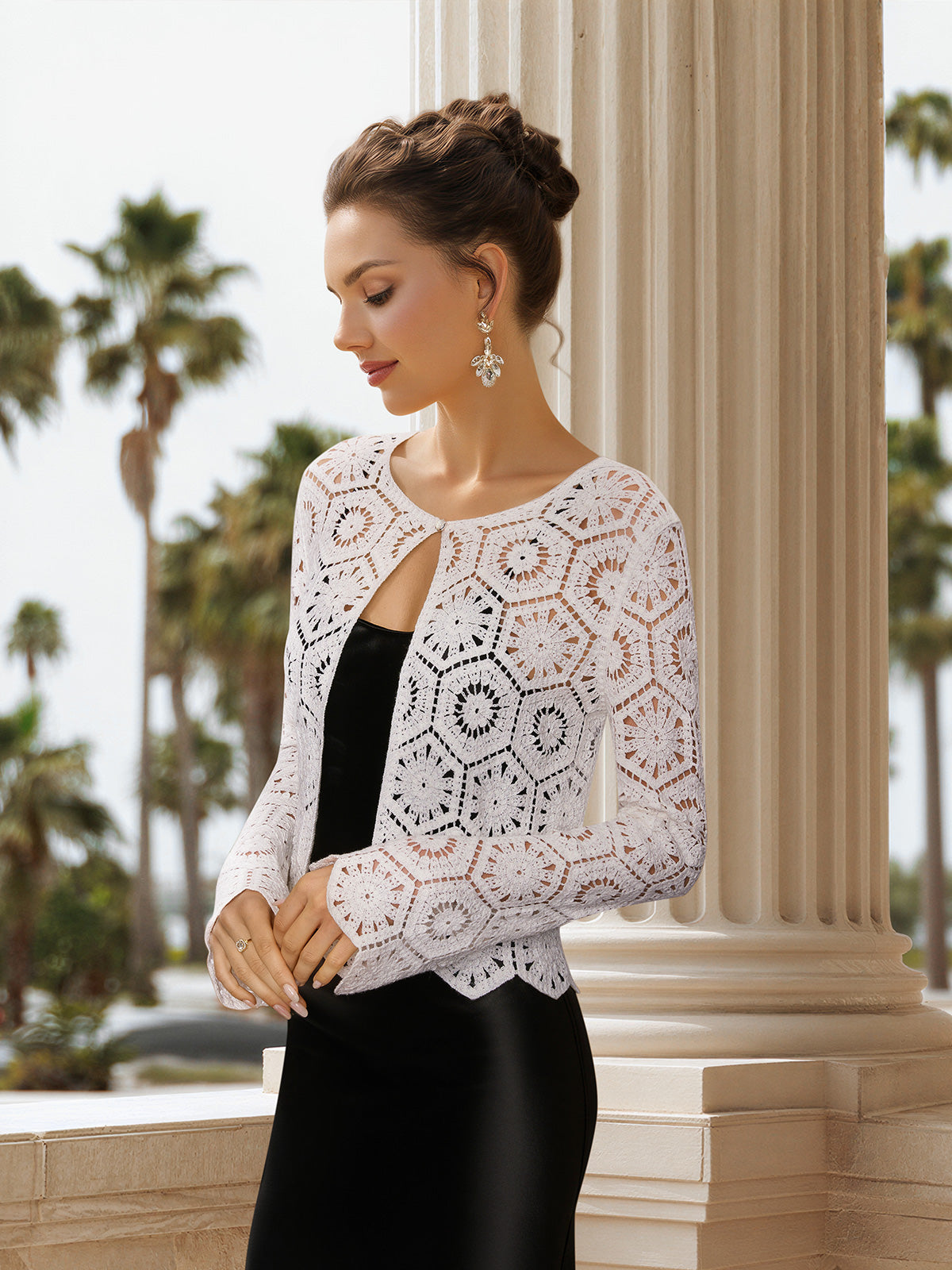 My wife absolutely loves this cardigan. The crochet design looks even better in person, elegant and detailed without being over the top. The little golden thread running through it gives it just the right amount of shimmer, perfect for dressy occasions but not too flashy.