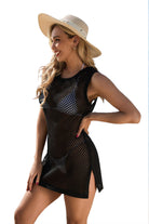 Embrace effortless beachside elegance in this stunning knit cover-up, featuring a modern hollow-out backless design and flattering side splits. Crafted from soft, medium-weight fabric, it drapes beautifully over your swimsuit for a touch of breezy sophistication.