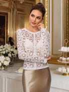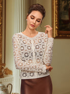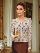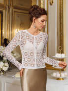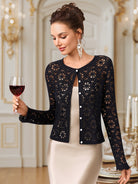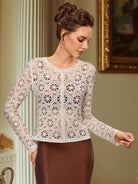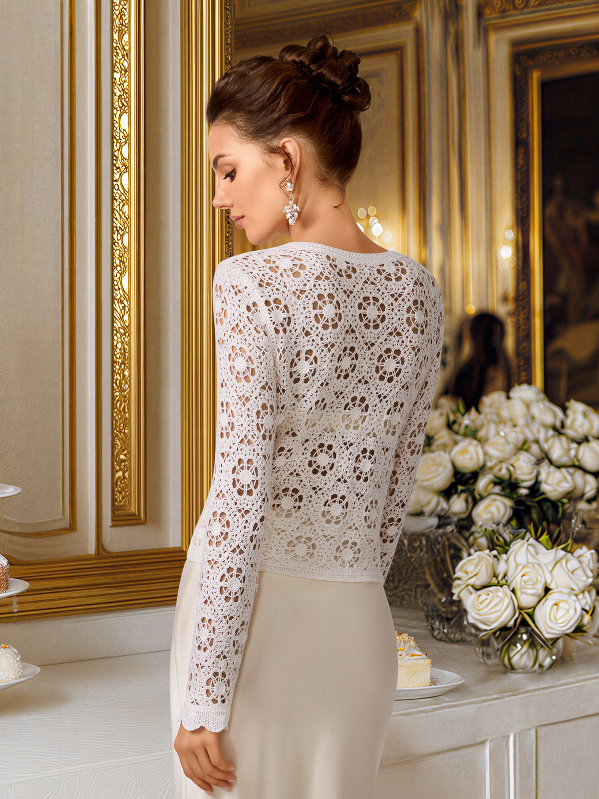 Adorn yourself in timeless elegance with this vintage-inspired crochet cardigan, delicately woven with golden threads for a touch of understated luxury. Its cropped, open-front silhouette offers effortless versatility, transforming any outfit into a statement of refined artistry.