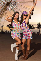 Hand-crocheted with vibrant Aztec motifs, this cover-up takes over a dozen hours to create by hand. This is more than a piece—it's a feeling of bold confidence and bohemian romance. Designed for sun-drenched days and enchanting evenings, it wraps you in stories and style.