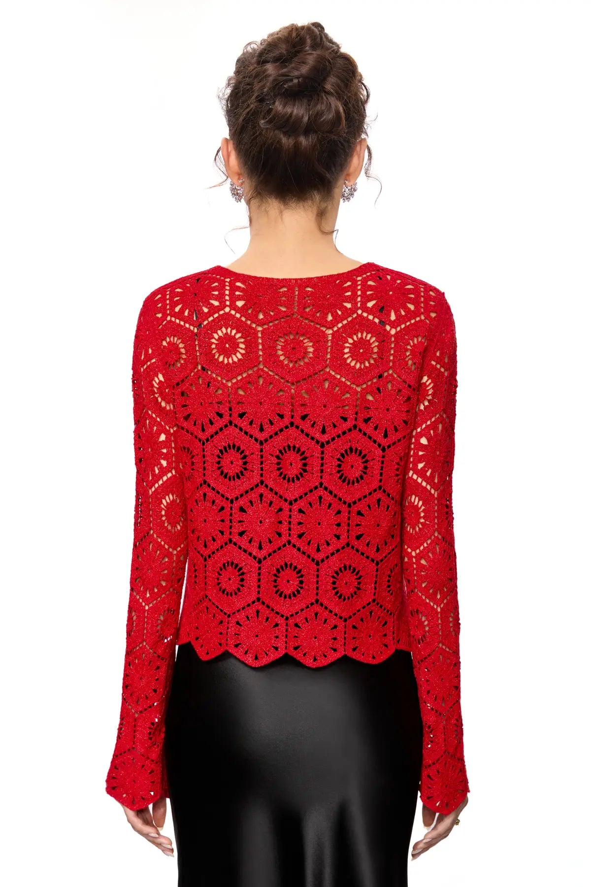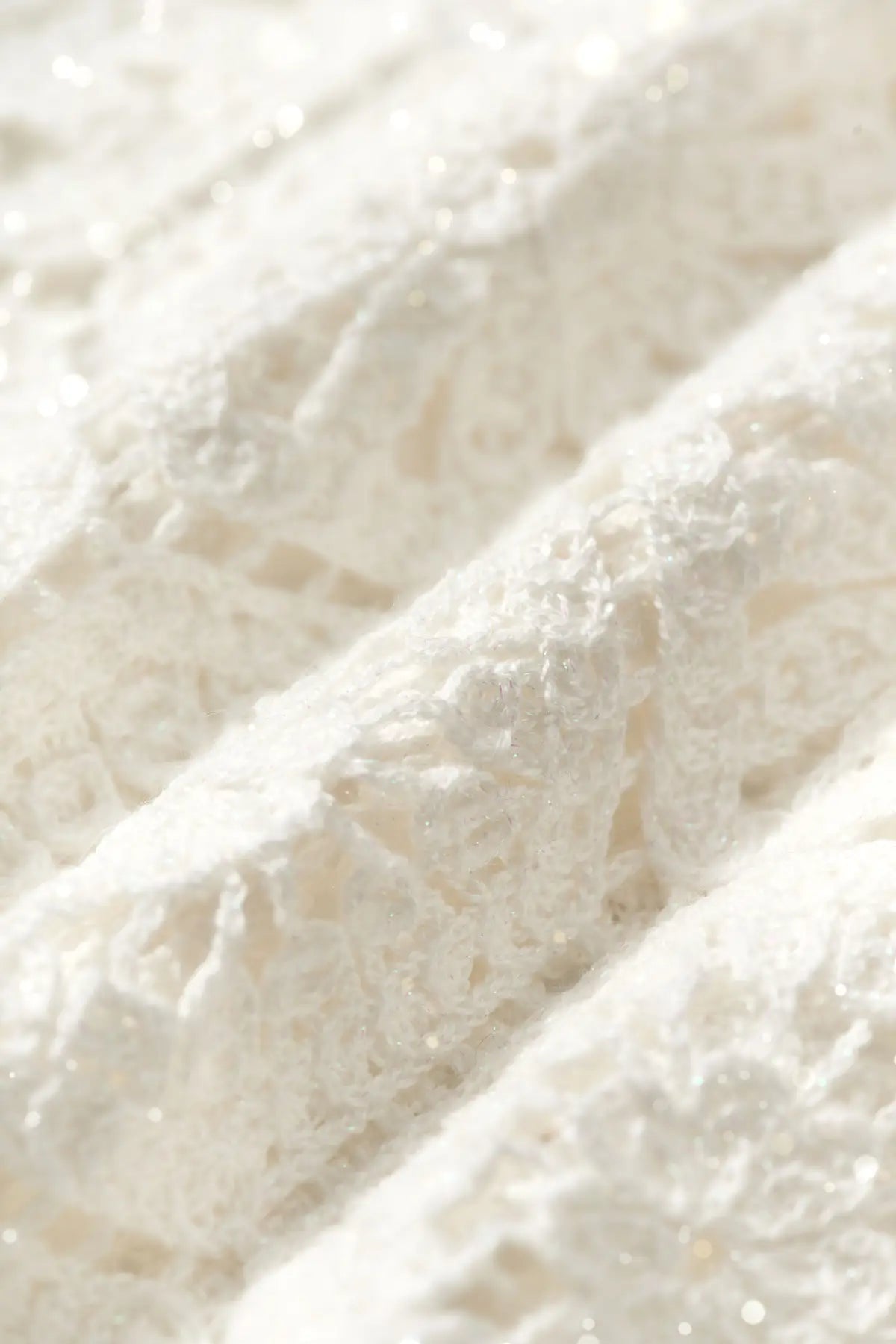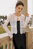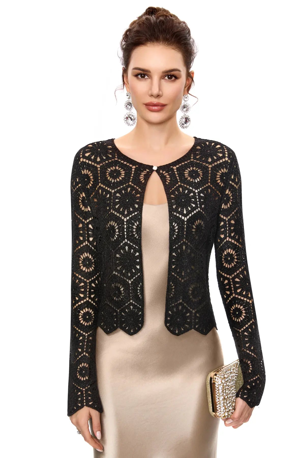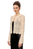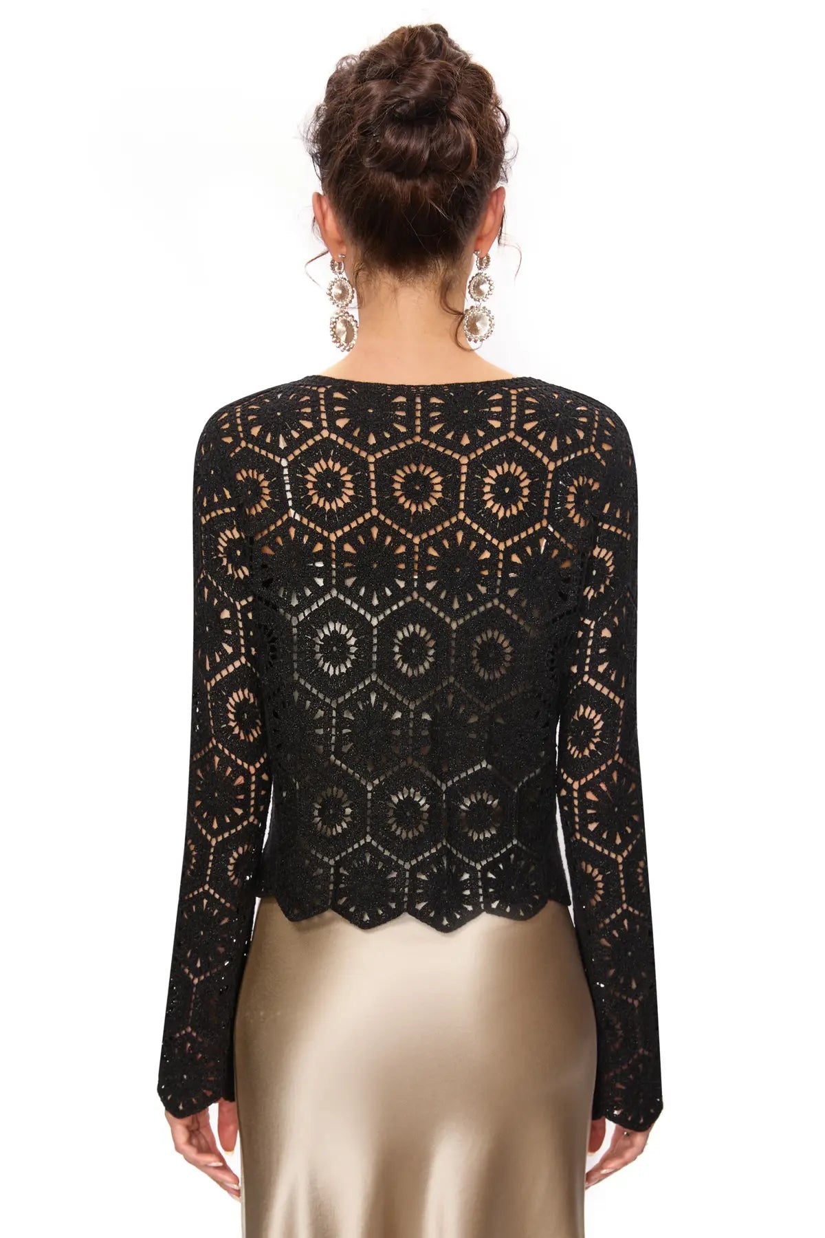 Designed with precision-knit texture and intricate hollow-out details, this piece elevates any outfit—from silk dresses to casual wide-leg pants. Whether for a garden party, evening event, or everyday wear, it’s a lightweight, artful essential that celebrates timeless femininity.