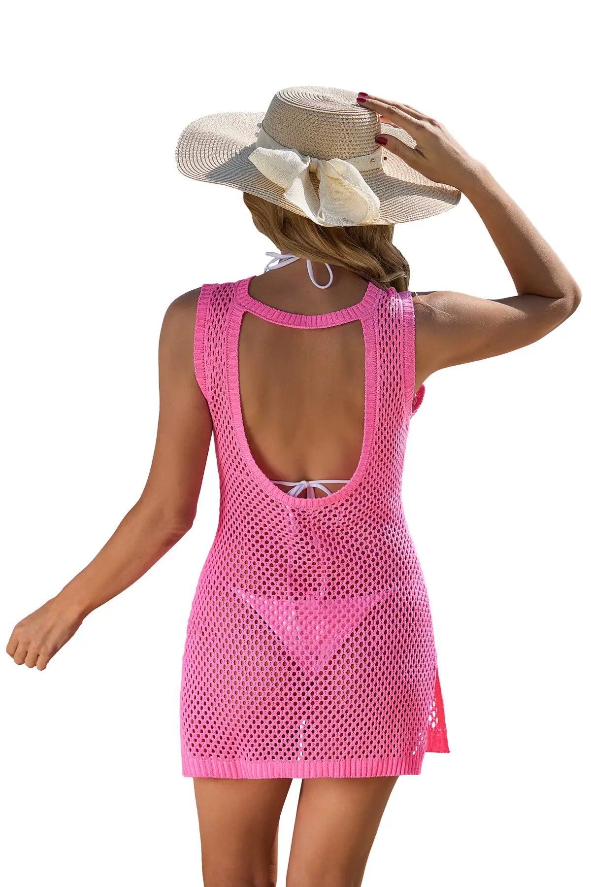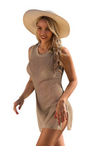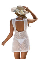 Embrace effortless beachside elegance in this stunning knit cover-up, featuring a modern hollow-out backless design and flattering side splits. Crafted from soft, medium-weight fabric, it drapes beautifully over your swimsuit for a touch of breezy sophistication.