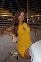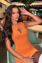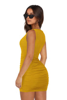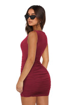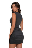Embrace your confidence in this sleek cutout mini dress, designed to highlight your curves with a body-hugging fit and stylish ruched detailing. Crafted from a stretchy and soft rayon-spandex blend, it offers both comfort and a flawless silhouette for any night out.