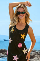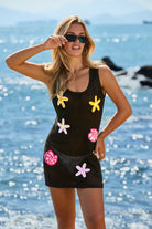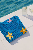 Step into a piece of wearable ocean art. This elegant cover-up features lovingly hand-crocheted 3D starfish and shells, meticulously adrift on a soft mesh fabric. With its flattering U-neckline and fluid silhouette, it captures the joy and charm of the coast, transforming your beach moments into a statement of artisanal beauty.