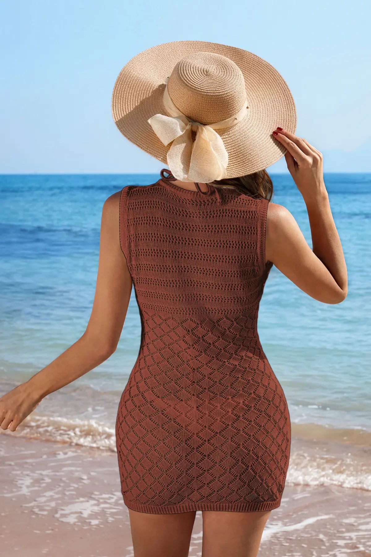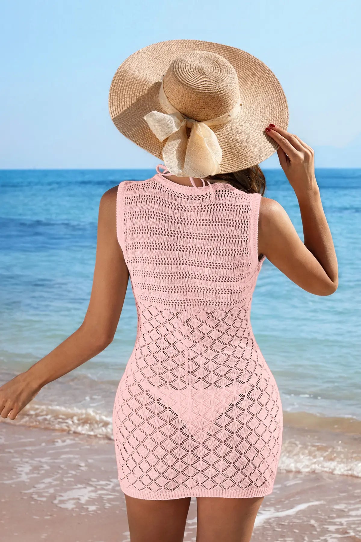Tie Front Swimsuit Crochet Cover Up Dress
