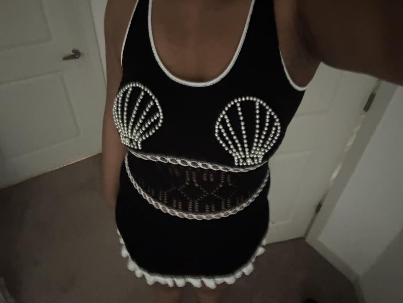 I got this as a beach cover-up and I actually like it more than I expected. The shell detail is what sold me, and it looks just like the photos. It definitely gives that fun vacation/mermaid vibe.