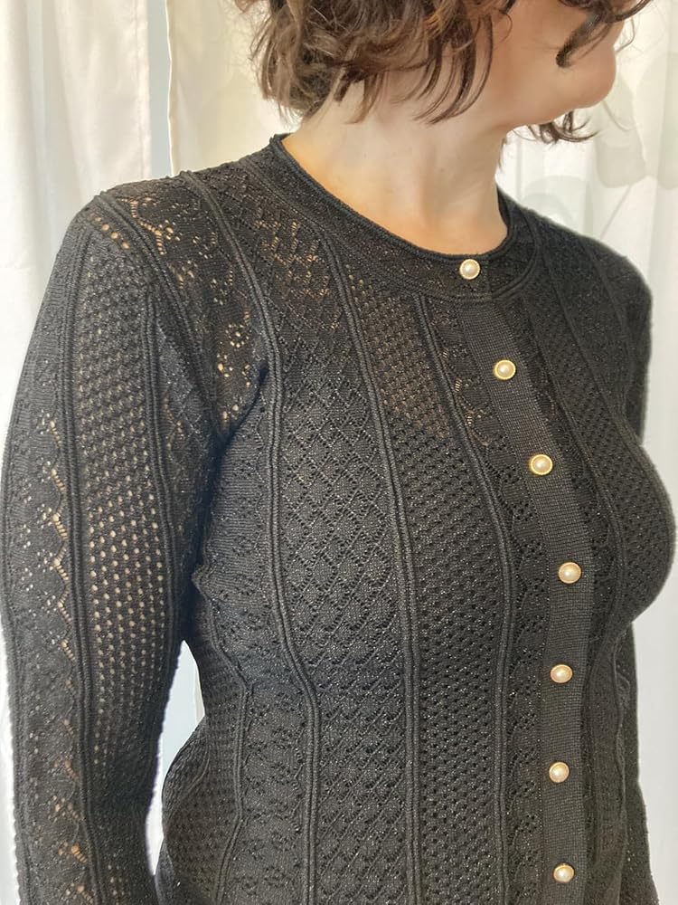This Victorian?inspired cropped cardigan is one of those pieces that instantly adds charm to an outfit. It blends old?world elegance with modern wearability, making it a standout layer whether you��re dressing up or keeping things casual.? Design & AestheticThe first thing you notice is the pearl button detailing, which gives the cardigan that soft, romantic Victorian touch. Paired with the golden threads woven throughout, it has just the right amount of shimmer �� refined, not flashy. The openwork pattern adds texture and visual interest, giving it a handcrafted, heirloom feel.?? Fabric & ComfortMade with a soft, breathable feel, this cardigan is surprisingly comfortable for something so ornate. It��s designed as a lightweight, non?bulky layer, which makes it easy to wear year?round. You get warmth without heaviness, and the fabric drapes nicely without losing its structure.?? Fit & VersatilityThe cropped silhouette pairs beautifully with high?waisted jeans, skirts, or dresses. It adds shape without overwhelming your outfit, and the vintage styling makes even simple basics look intentional and put?together.- Works as a statement top on its own- Layers effortlessly over camis, tanks, or dresses- Dressy enough for events but easy to style for everyday wear?? Overall ImpressionIf you love pieces that feel feminine, vintage?inspired, and thoughtfully detailed, this cardigan is a lovely addition to your wardrobe. The pearl buttons, golden threads, and openwork knit give it personality, while the lightweight, breathable fabric keeps it practical. It��s the kind of sweater that makes you feel polished the moment you put it on.