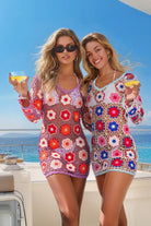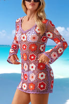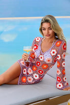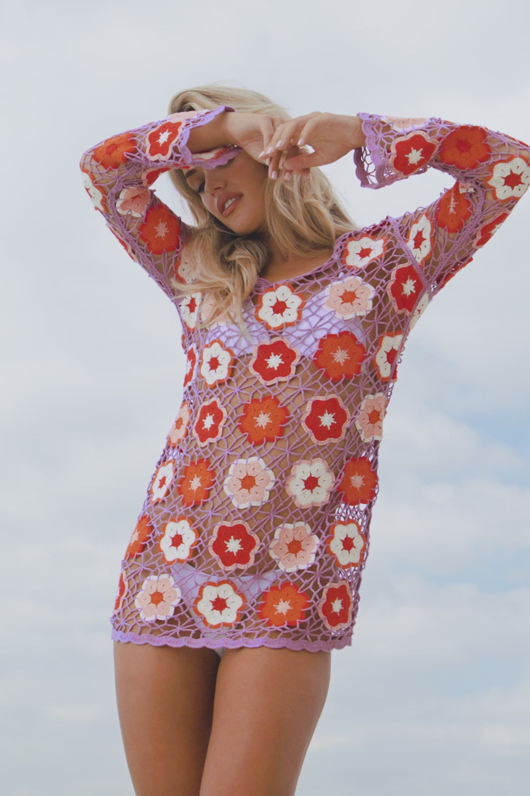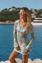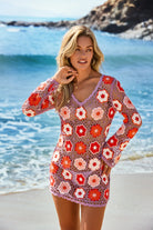 Adorn yourself in a bloom of artistry with this exquisite crochet cover-up, where delicate 3D camellia embroidery meets a vibrant, bohemian design. Featuring a deep V-neck and graceful bell sleeves, each piece is lovingly crafted to become wearable art that transitions effortlessly from sun-drenched afternoons to romantic resort evenings.