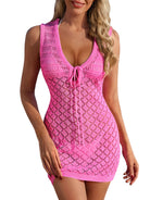 Drape yourself in effortless bohemian charm with this crochet swimsuit cover-up, featuring a deep V-neckline and adjustable front tie for a customizable fit. Delicately crafted with hollow-out knit details, this lightweight piece adds a touch of sexy elegance to your beach look while draping beautifully over any swimsuit.