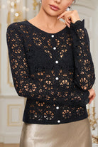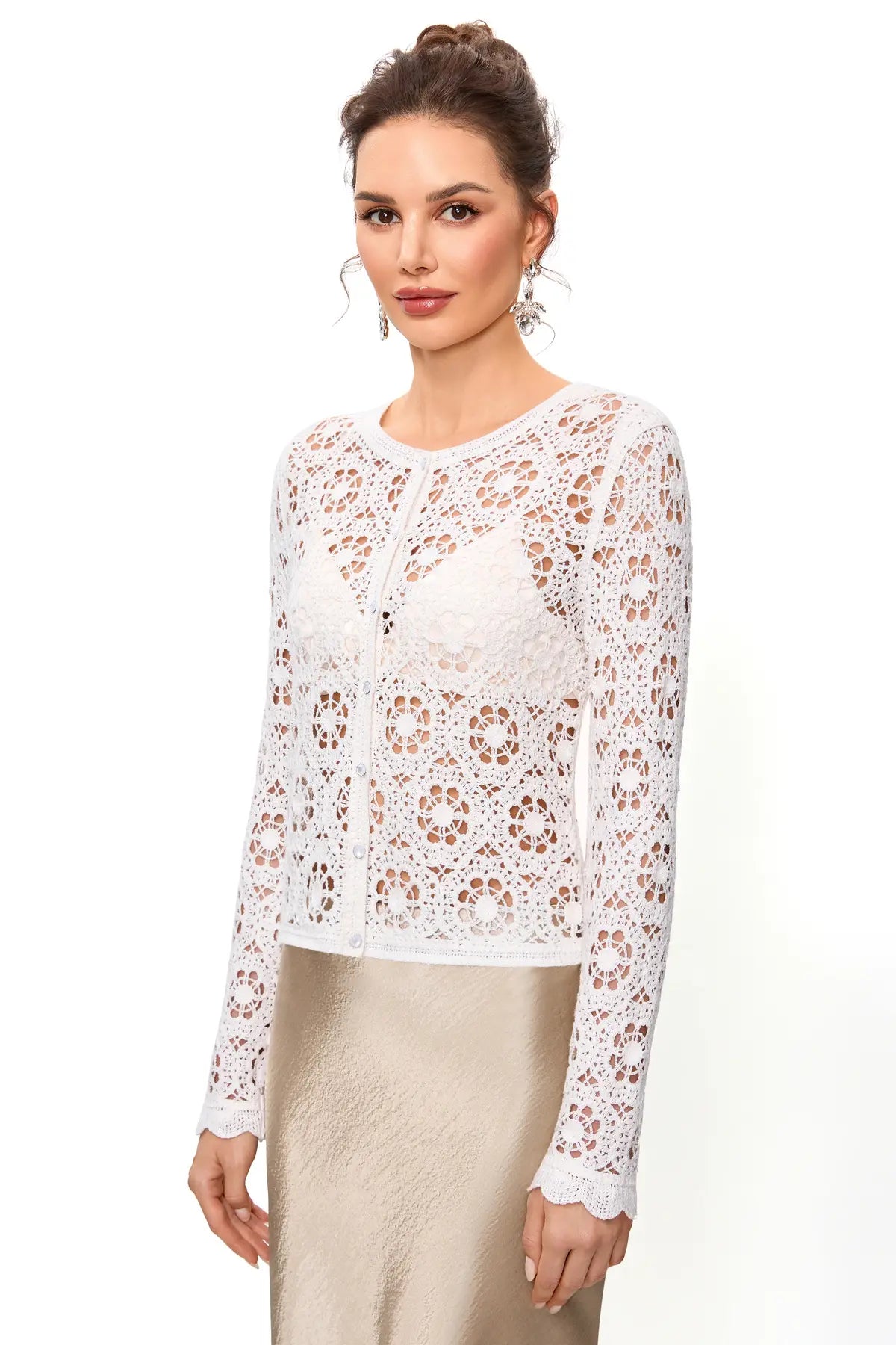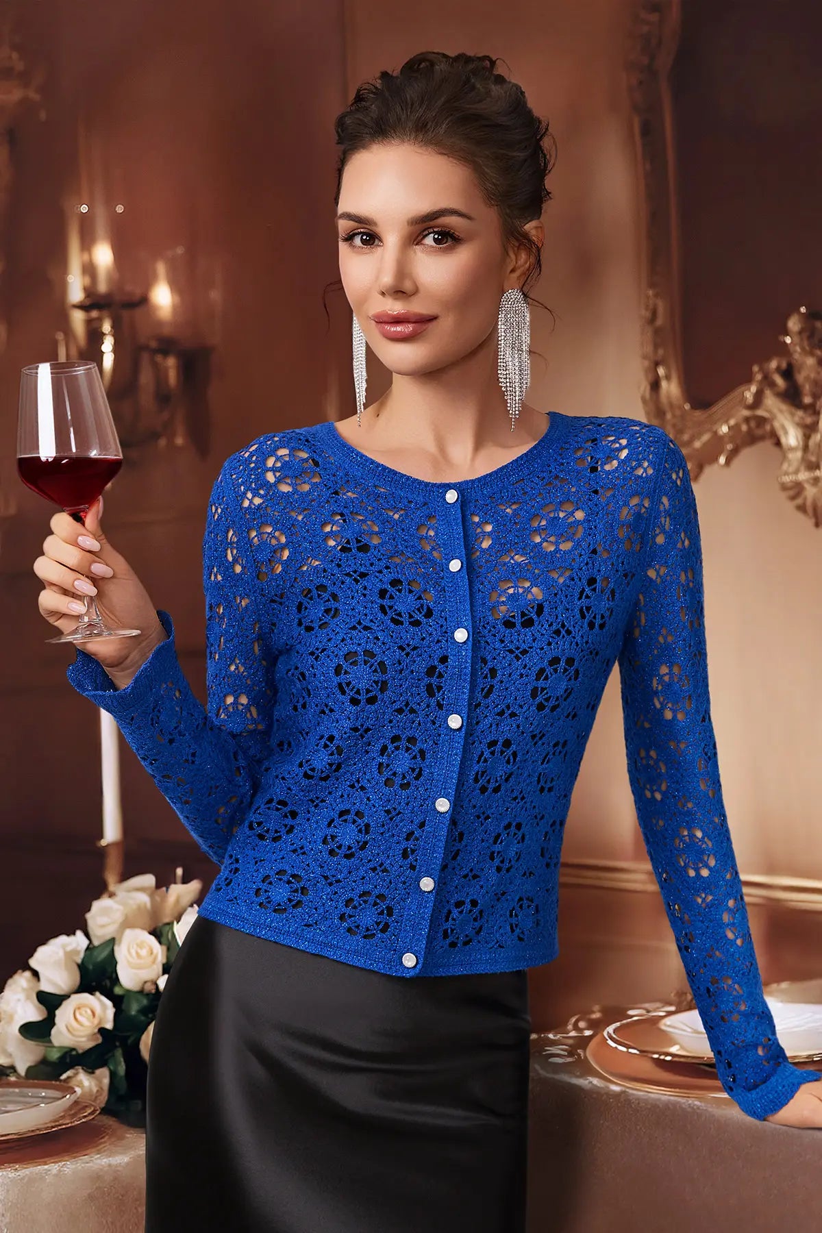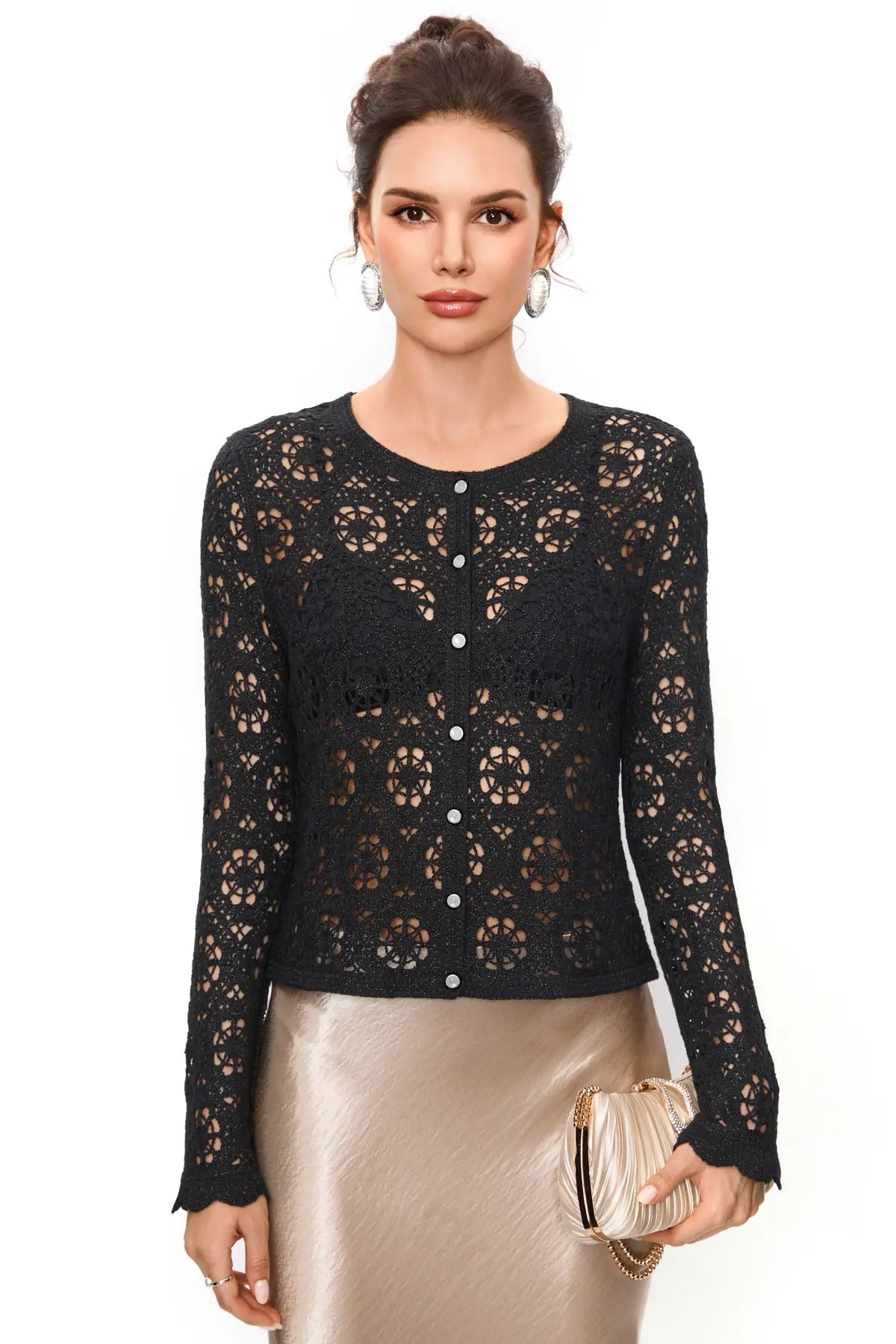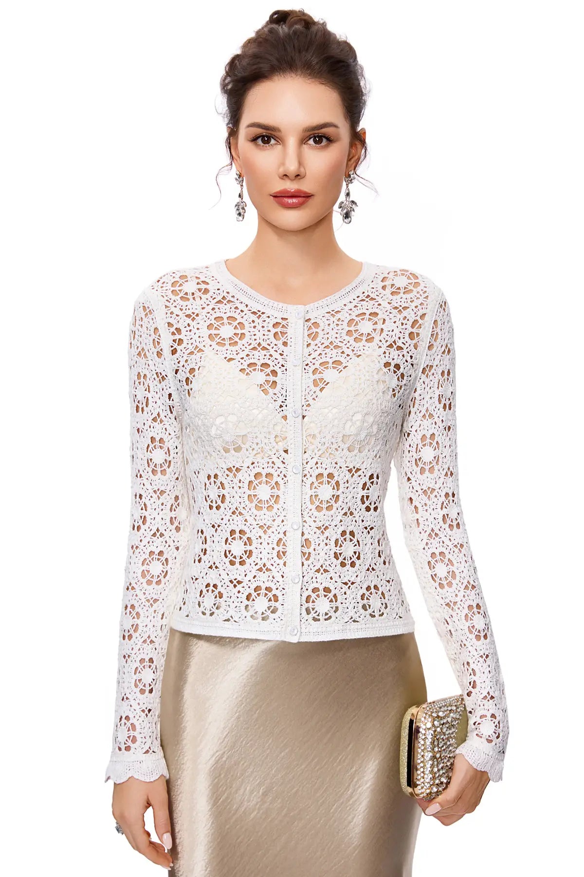 Adorn yourself in timeless elegance with this vintage-inspired crochet cardigan, delicately woven with golden threads for a touch of understated luxury. Its cropped, open-front silhouette offers effortless versatility, transforming any outfit into a statement of refined artistry.
